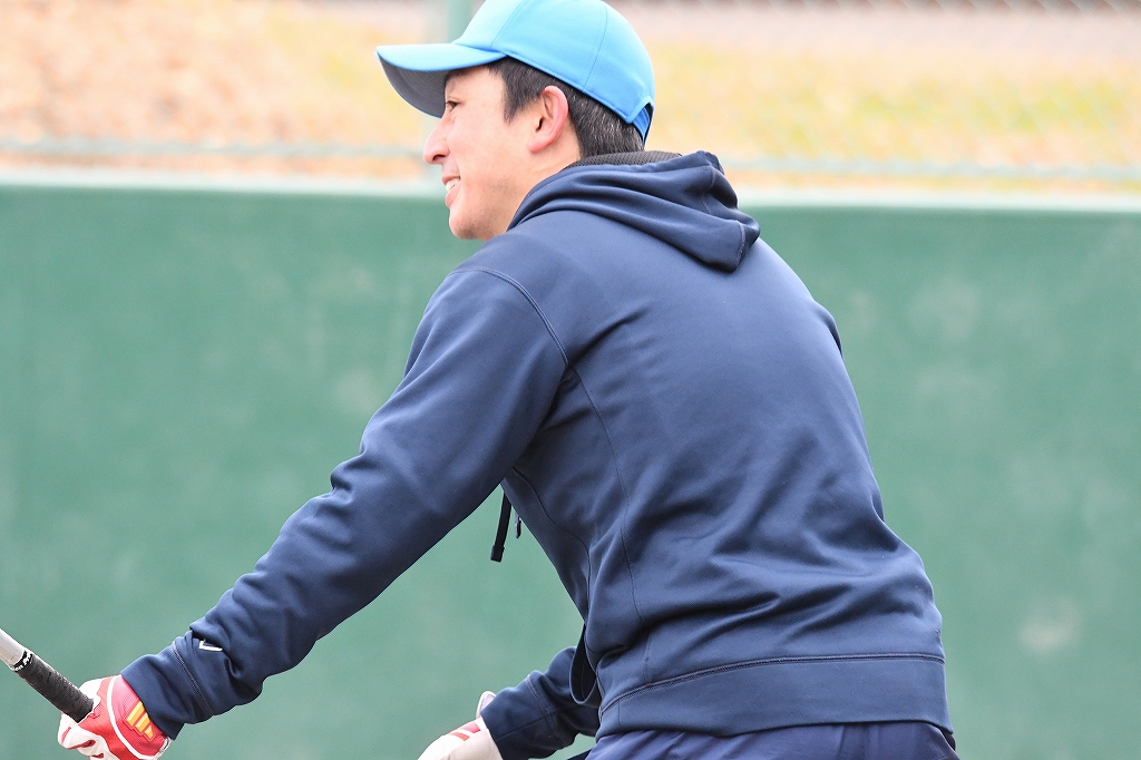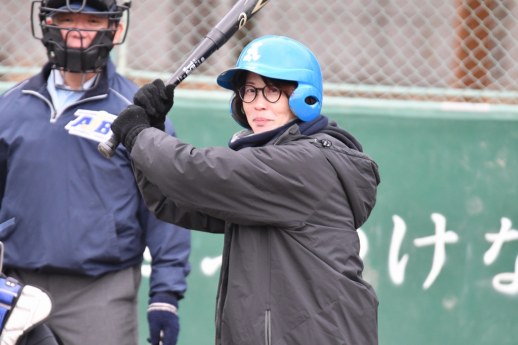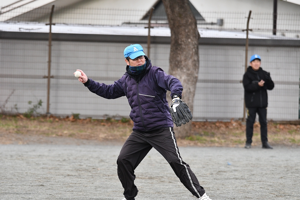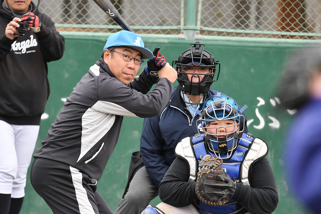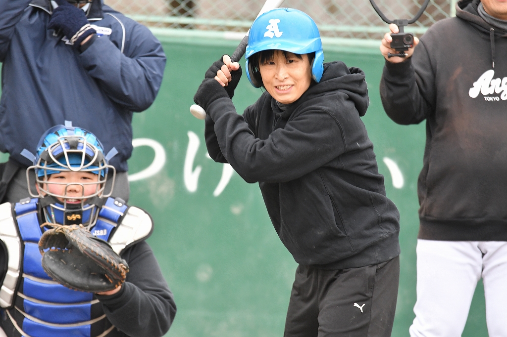 さくっと1点取られて大人チーム(夢工房)の攻撃!現役の大人、さまになってるう~!!