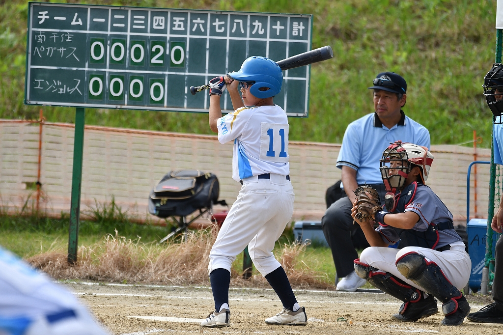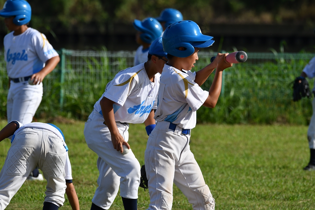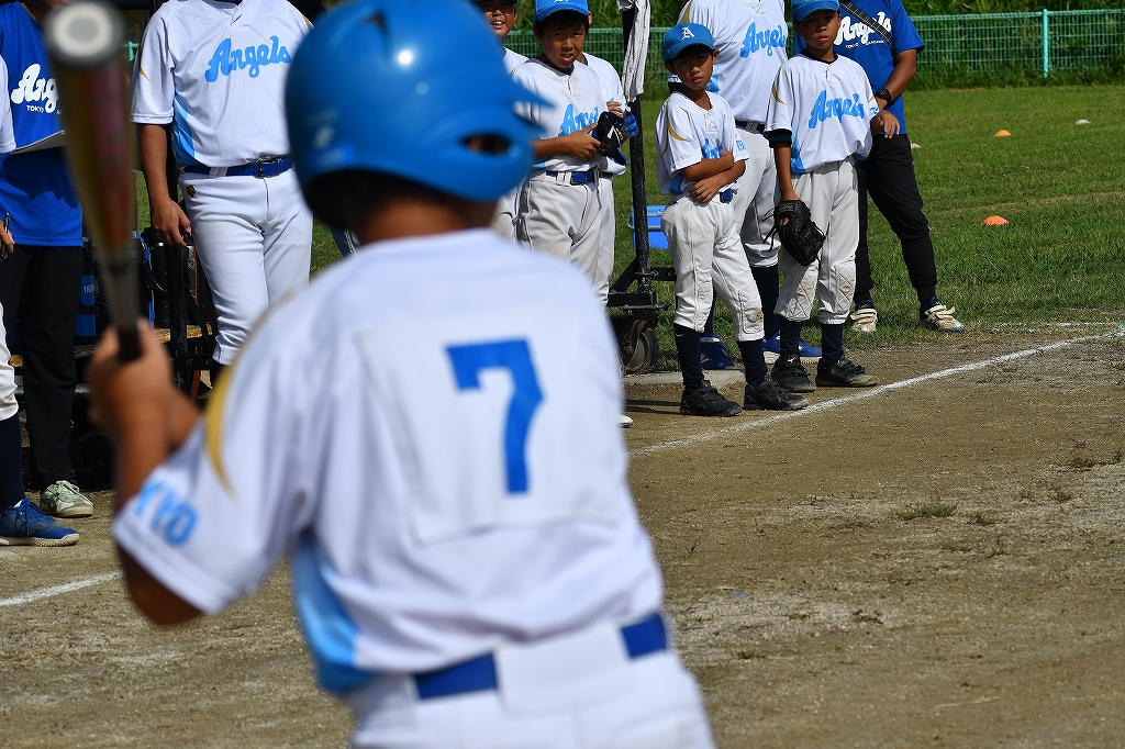 7回裏エンジェルスの攻撃。タイブレークの2塁ランナーを俊足の5年生ソウタに任せます!バッターは8番ユウダイ。理想的な送りバントを成功させ1アウト2,3塁に!そしてバッターは、前打席で悔しい三振のユウトへ!!