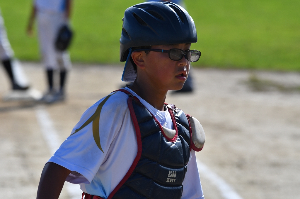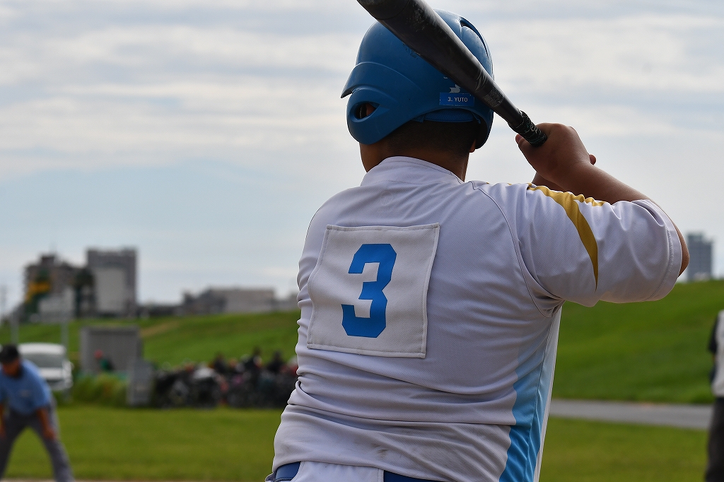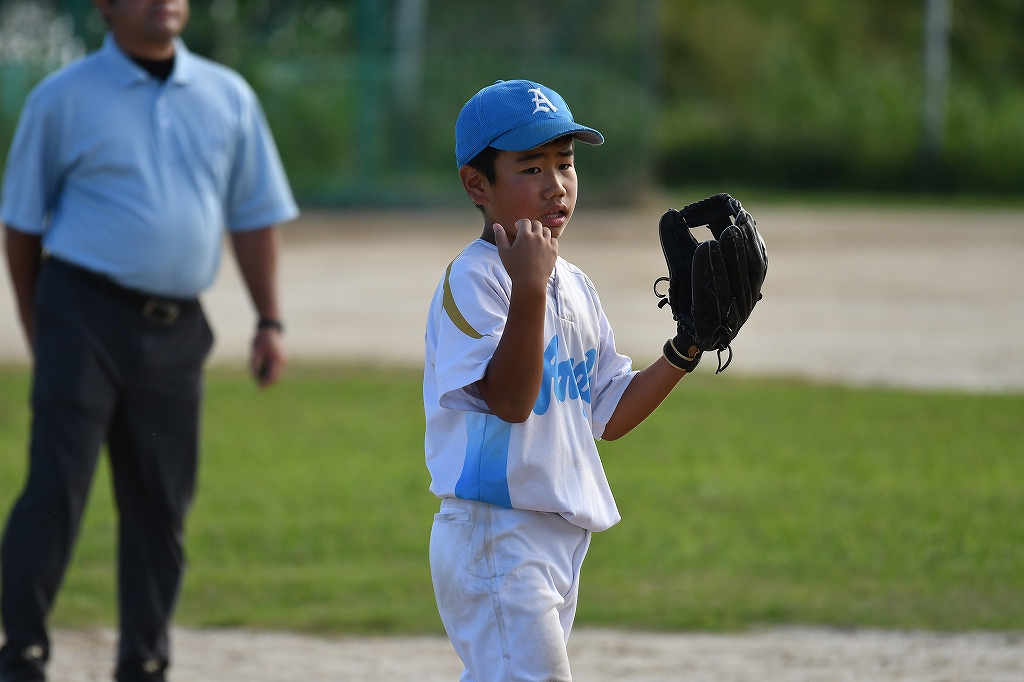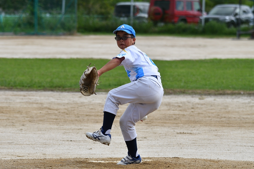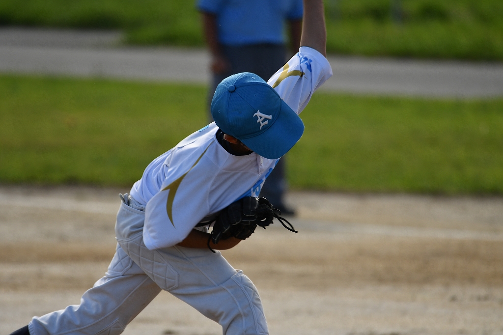 先発はエースのユウスケ!3番の強打者、田頭君に出塁を許すも、牽制で誘い出し、2塁タッチアウトで無失点!!