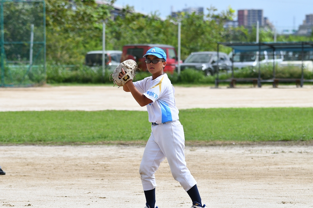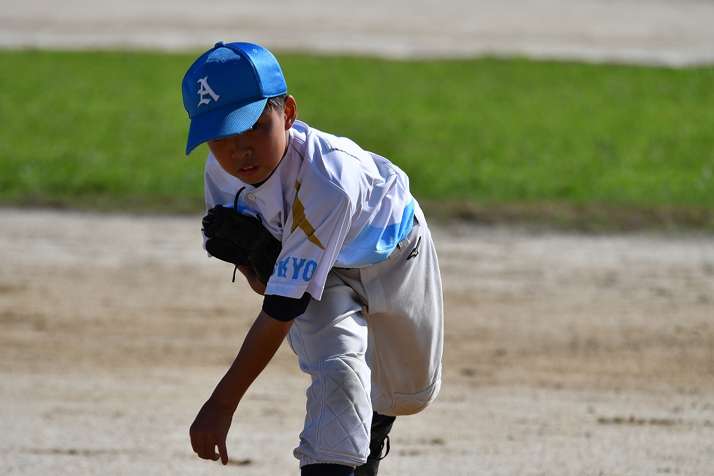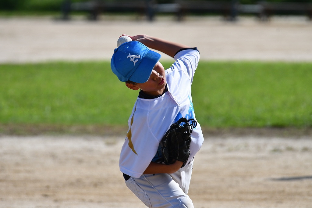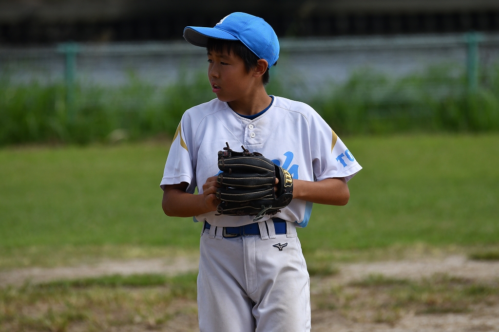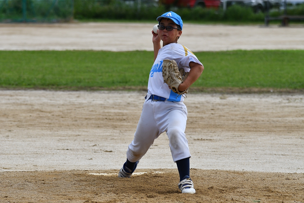 先発はエースのユウスケ!3番の強打者、田頭君に出塁を許すも、牽制で誘い出し、2塁タッチアウトで無失点!!