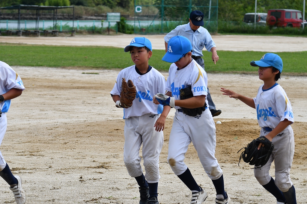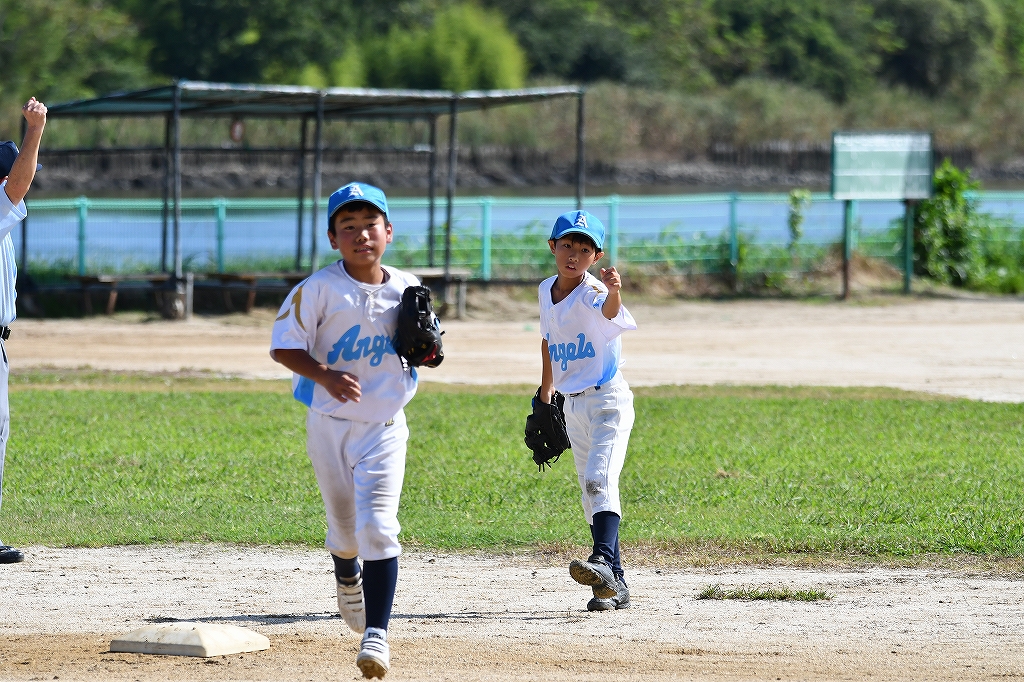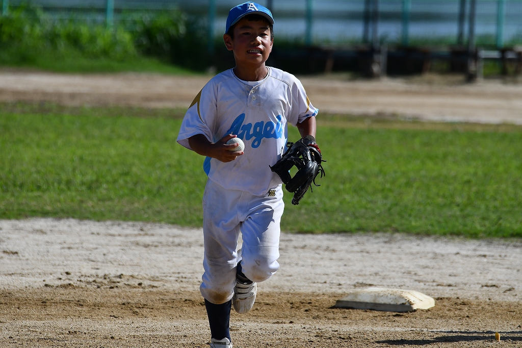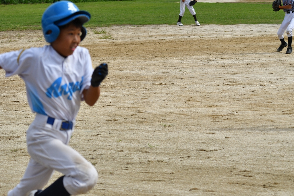 エンジェルスも投手交代でタダスケがマウンドへ!1アウト後、エラーで出塁のランナー、サードゴロでカズマが好守!セカンドへ送りアウト!ナイス!この進塁させないプレーが本当に良かった!そして4回に痛烈な左中間を打った平井君に打席が回り、タダスケ対平井君の勝負!打球はサードへ!カズマが好守!3アウト!!無失点!!そして。。。運命の最終回の攻撃へ!!